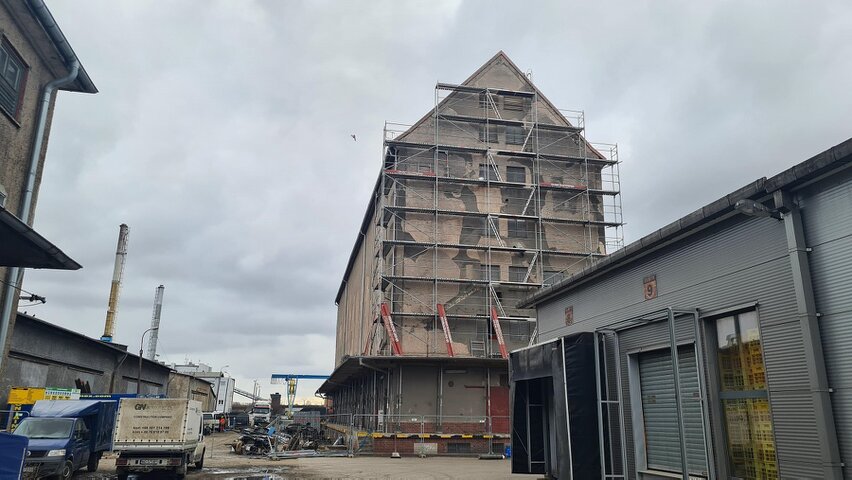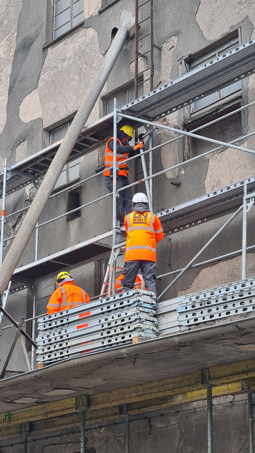 Prace w Braniewie idą pełną parą. Zawieźliśmy i aktualnie montujemy tam ponad 1700 m2 rusztowań elewacyjnych oraz szalunków stropowych, które będą pracowały na nasze potrzeby.